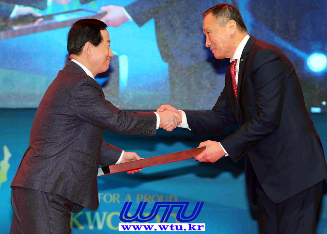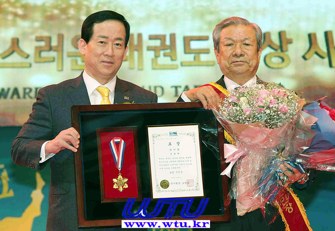 | ▲ © 포상, 특별부문의 수상자 김동석 전국태권도장연합회 회장 (우측)(WTU) |