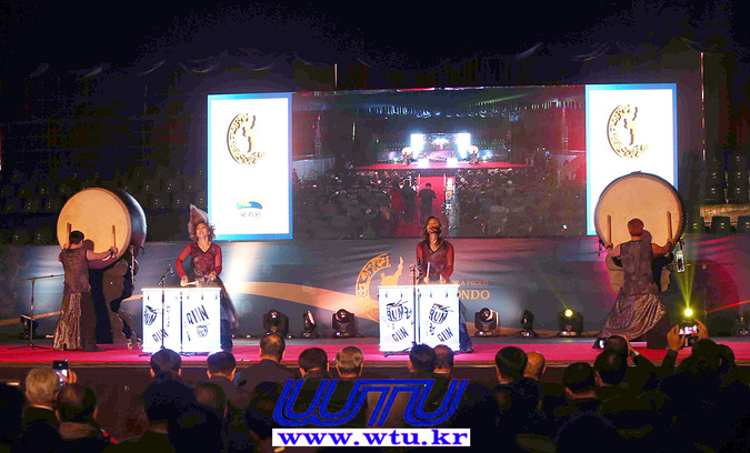 | ▲ © 행사장 분위기를 한층 고조시킨 LED 미디어 대북 퍼포먼스팀 타악그룹 ‘런’의 축하공연 모습 (WTU) |