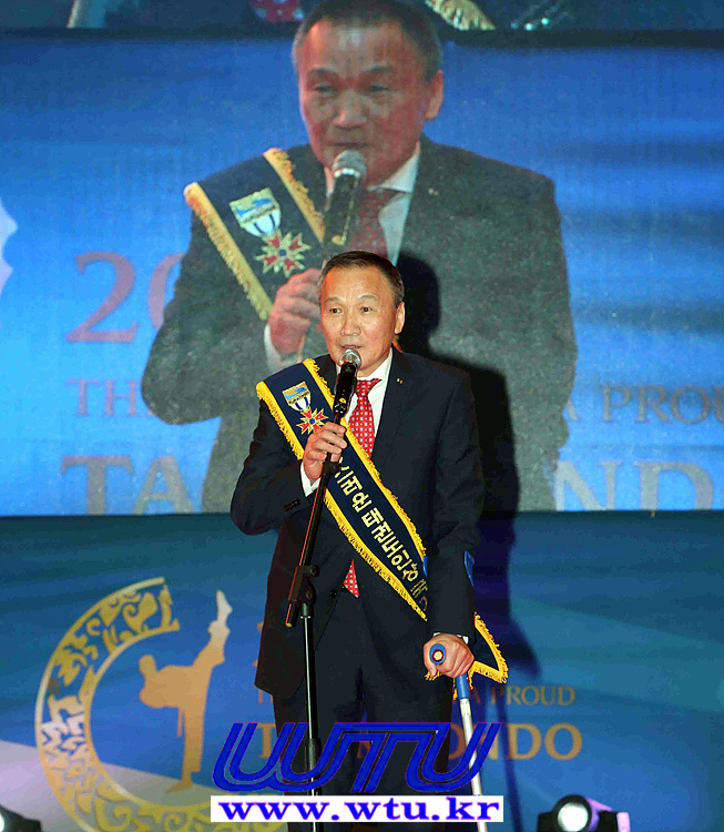 | ▲ © 홍성천 국기원 이사장이 기념사를 하고 있다 (WTU) |