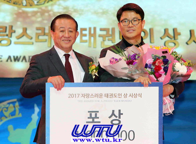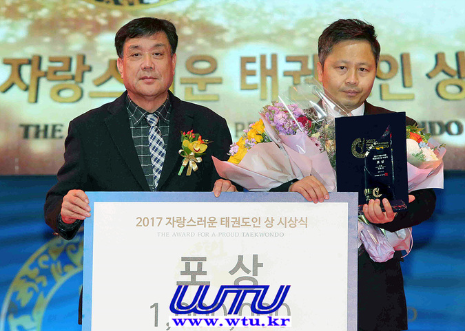 | ▲ © 포상, 지도자부문 수상자인 이영호 국기원 태권도 9단 최고 고단자회 부회장(우측) (WTU) |