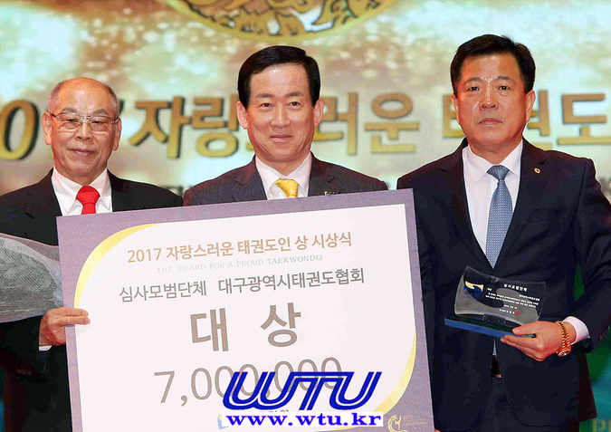 한편 시상식을 겸해 열린 ‘2017 심사모범단체 포상’은 대구광역시태권도협회가 대상을 받으며 상금 7백만 원의 주인공이 됐다.