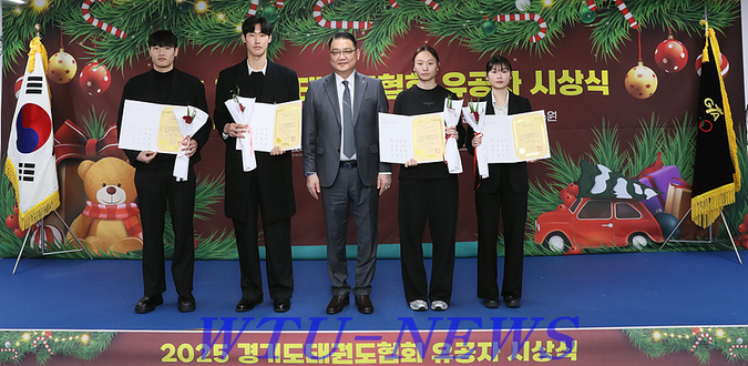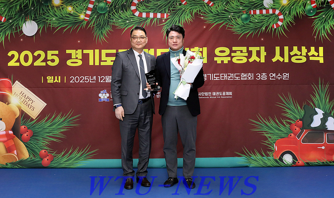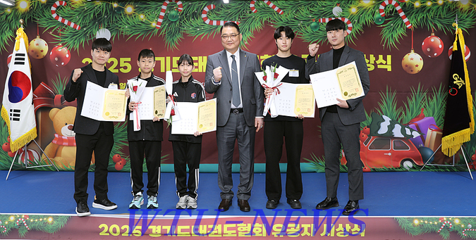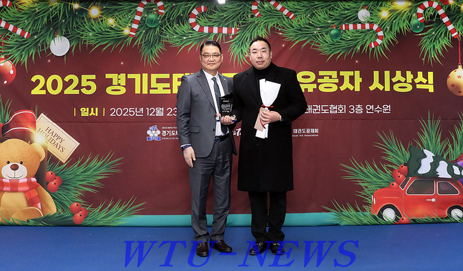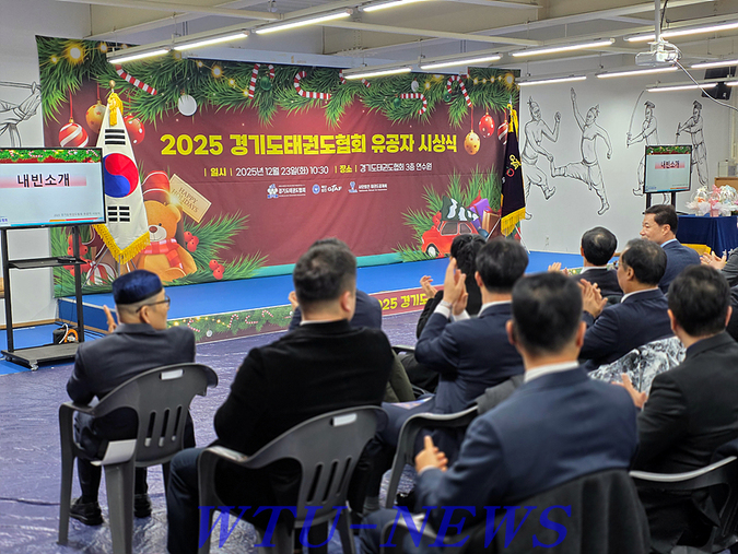 경기도태권도협회(GTA·회장 김평)는 지난 12월 23일 오전 10시 30분, 협회 연수원에서 ‘2025 경기도태권도협회 유공자 시상식’을 개최하고 한 해 동안 태권도 발전과 협회 운영에 기여한 유공자들의 노고를 기렸다.